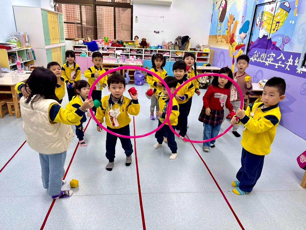 呼拉圈+布球+袋鼠跳-身-中-1-1-3覺察身體活動的安全距離。