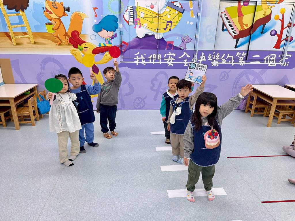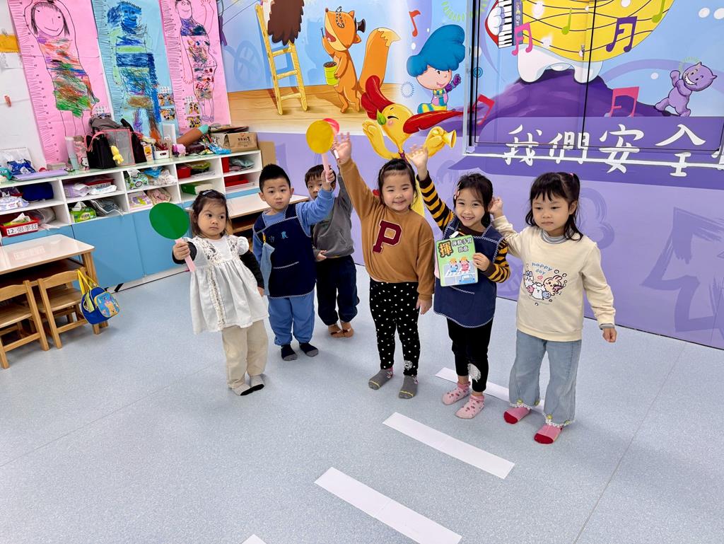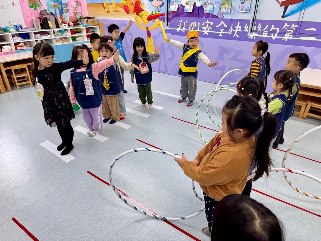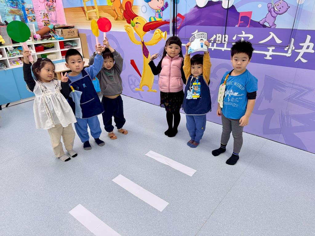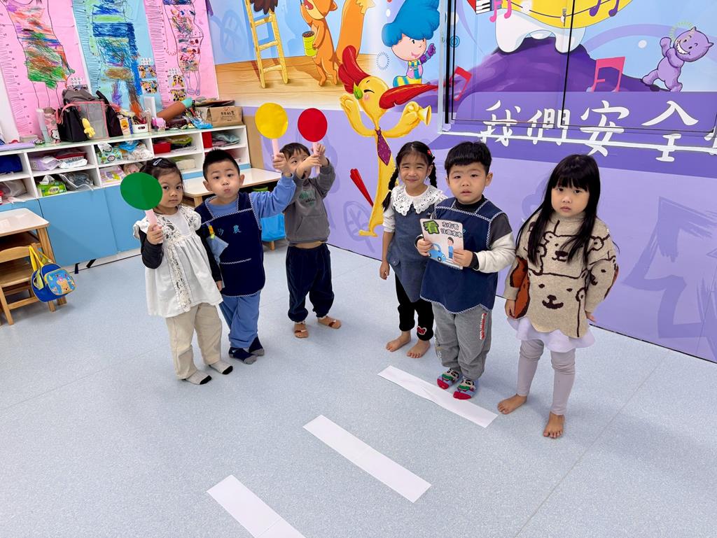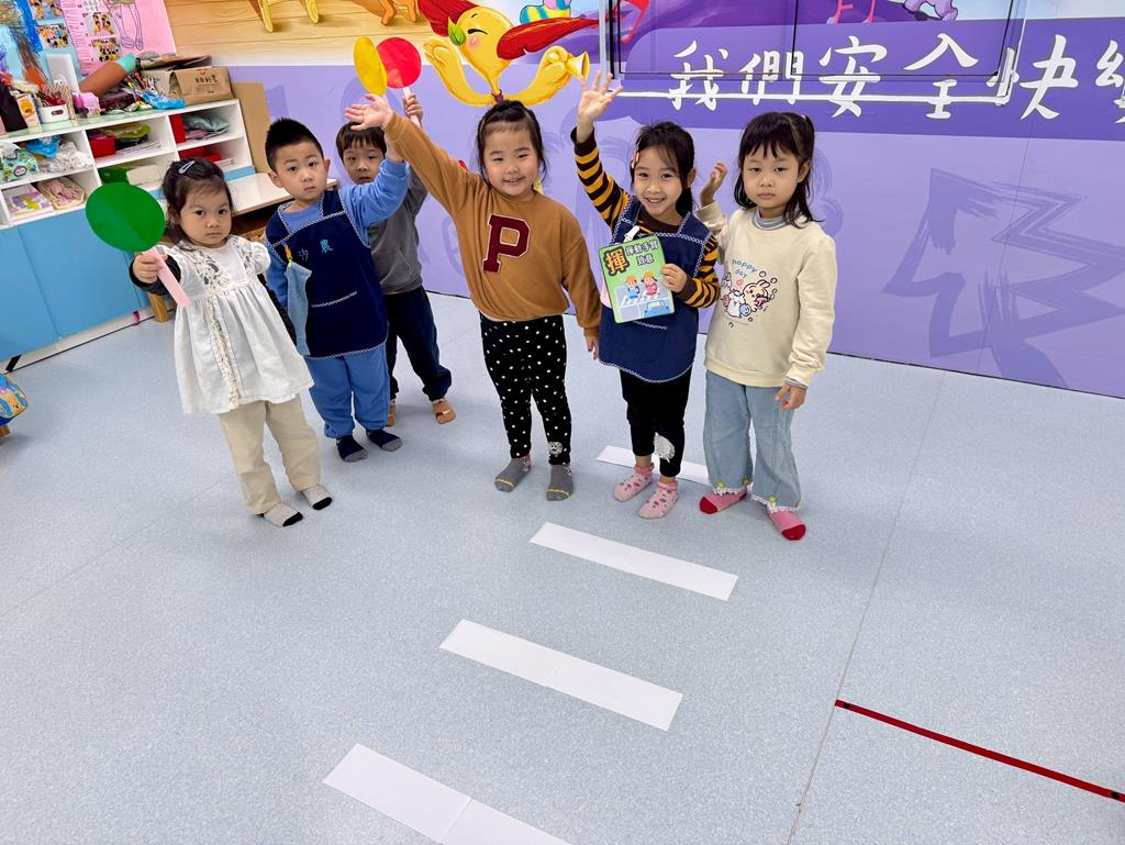 過馬路安全守則5口訣-停、看、轉、揮、動 情境遊戲-在馬路邊保持警覺、不嬉戲。