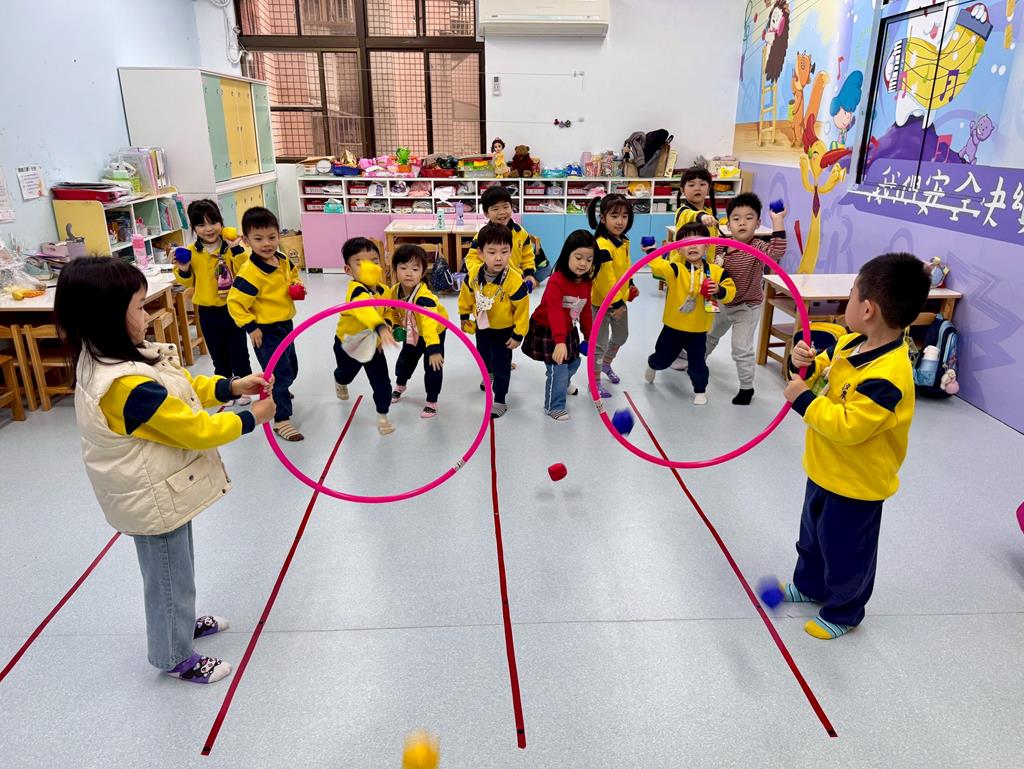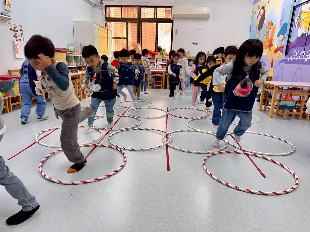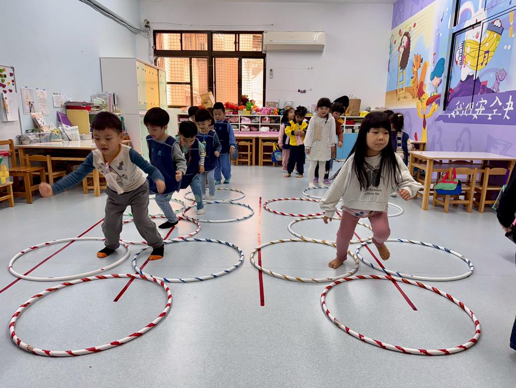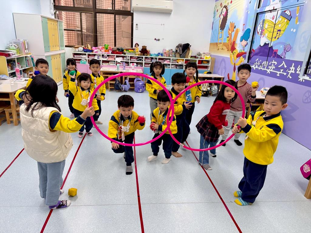 呼拉圈+布球+袋鼠跳-身-中-1-1-3覺察身體活動的安全距離。