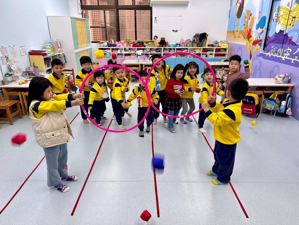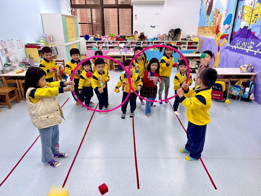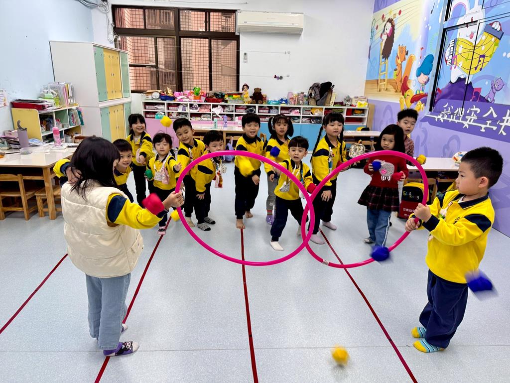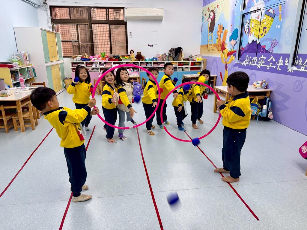 呼拉圈+布球+袋鼠跳-身-中-1-1-3覺察身體活動的安全距離。