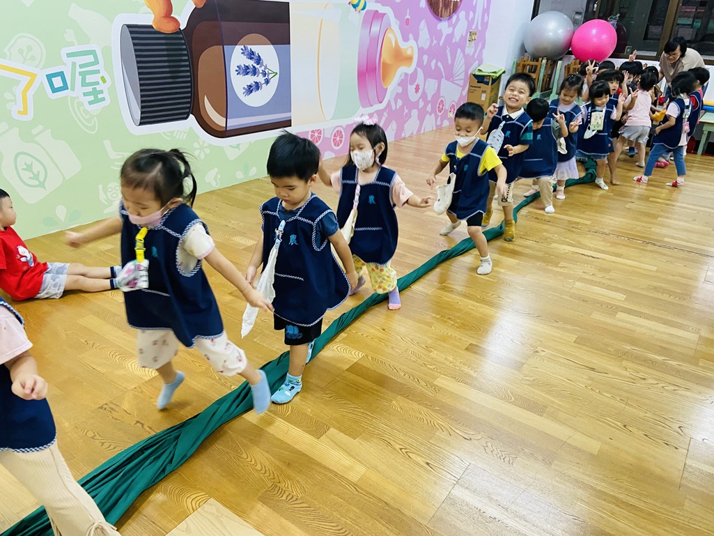 大肌肉活動~利用溜溜布來玩跳躍遊戲