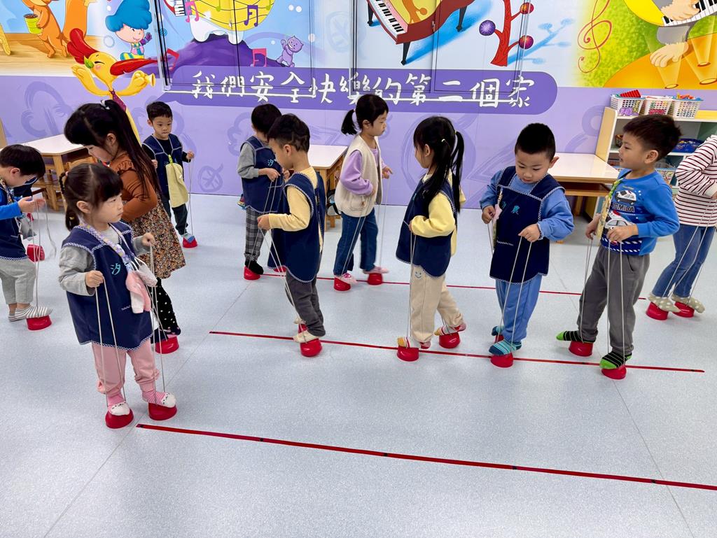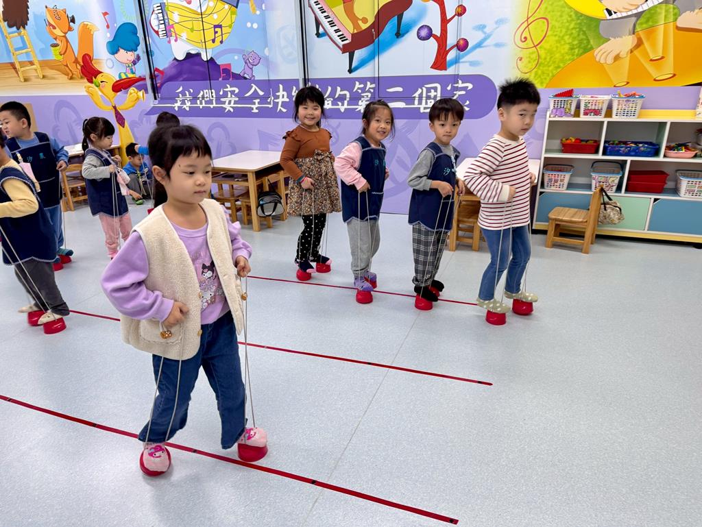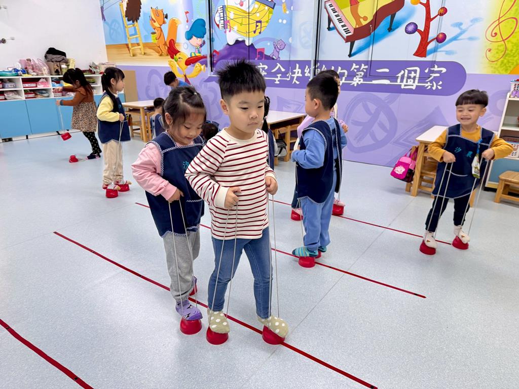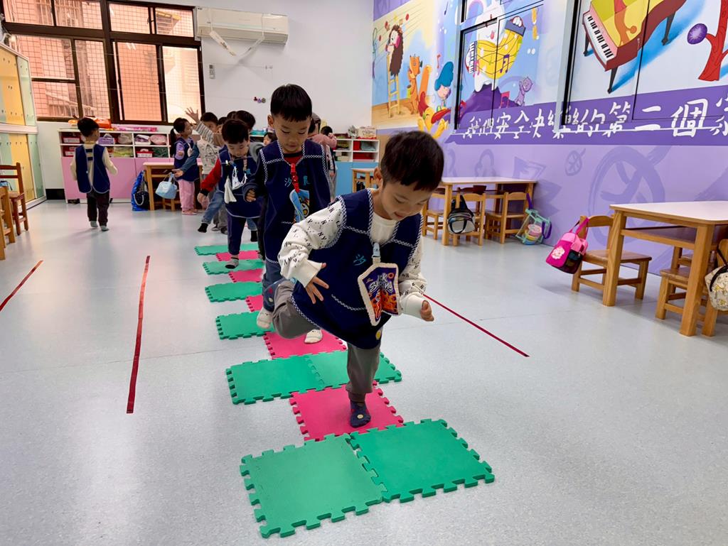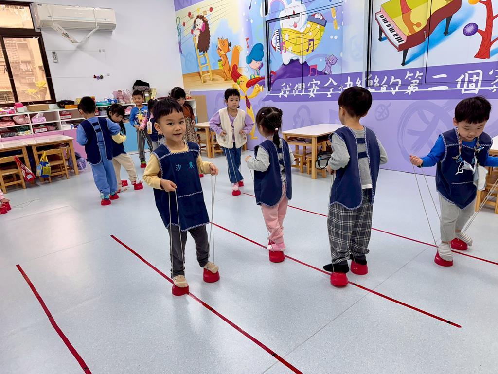 地墊方巾+高蹺-身-中-1-1-1覺察身體在穩定性及移動性動作表現上的協調性。