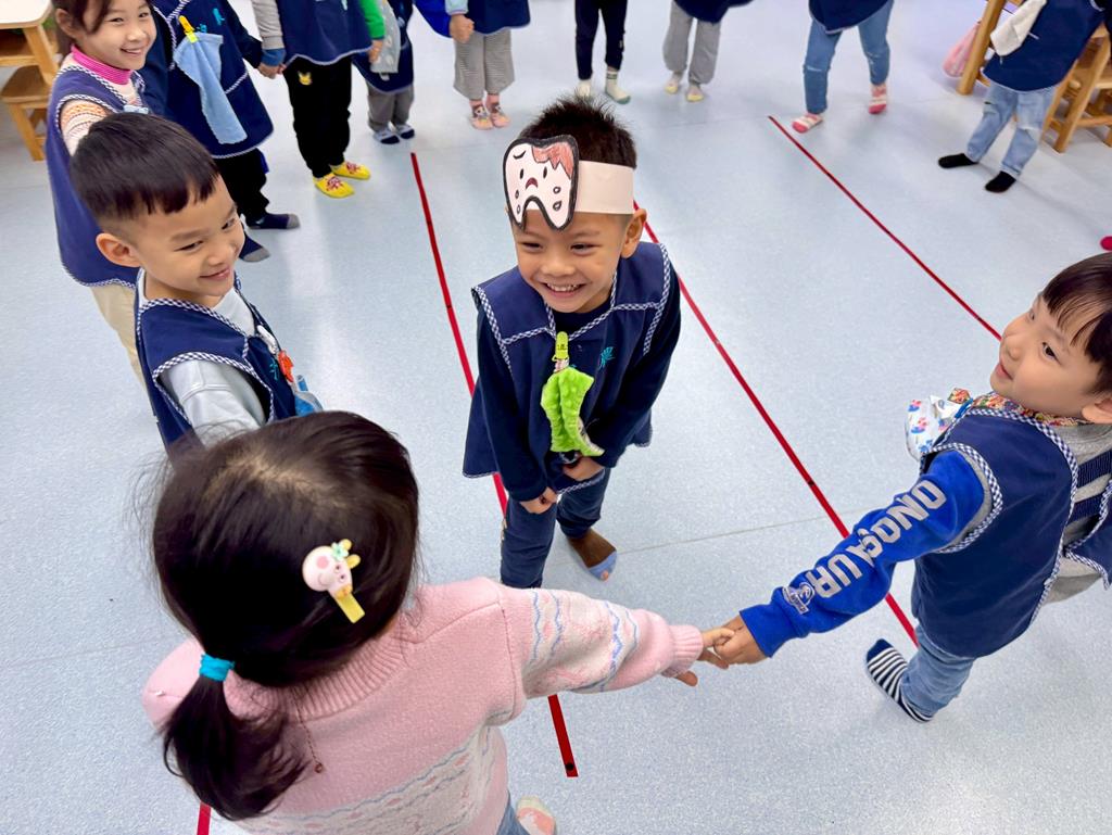 當音樂開始蛀牙蟲會出現,只要說出保護牙齒好方法,就不會被蛀牙蟲抓住囉!