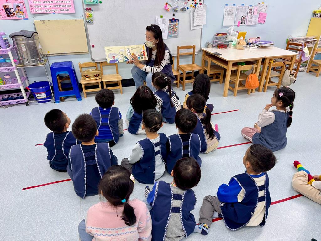 聆聽繪本「花花露牙醫」引發幼兒保護牙齒好方法。