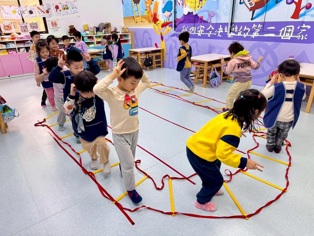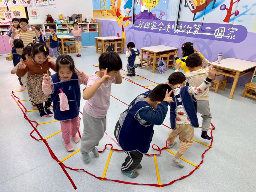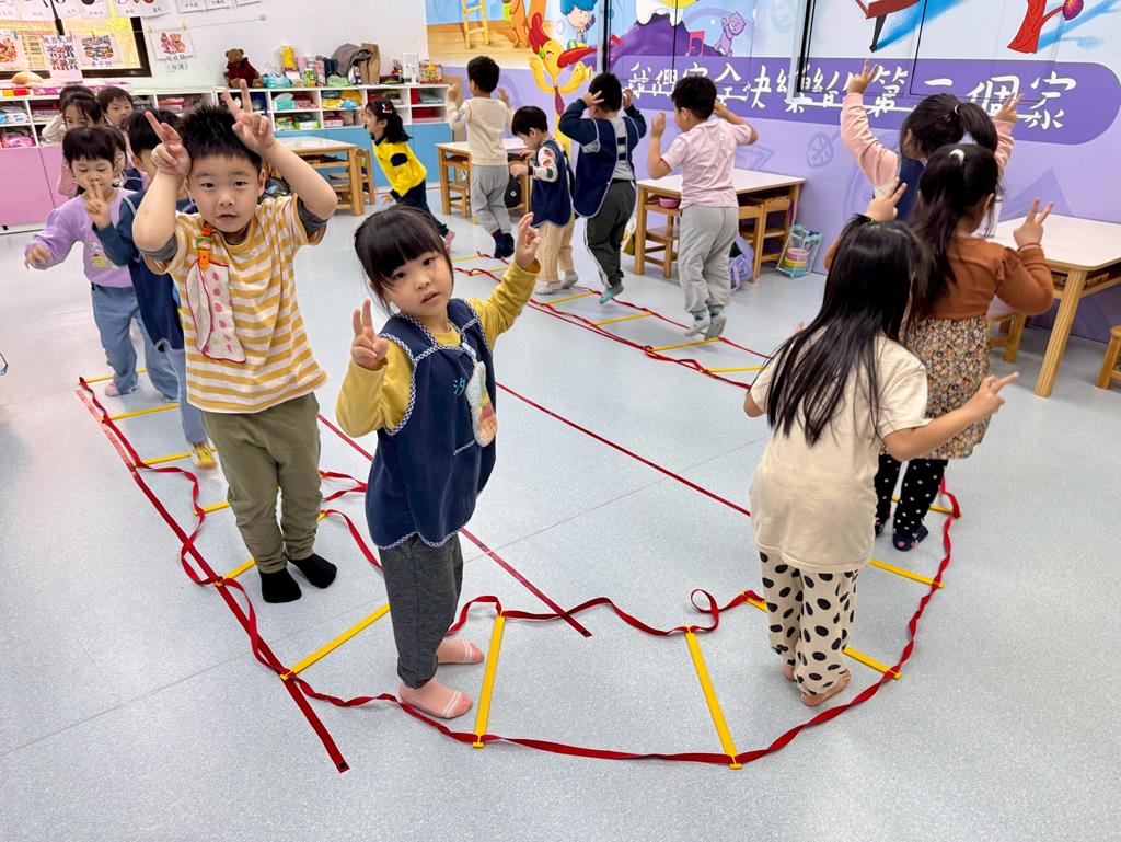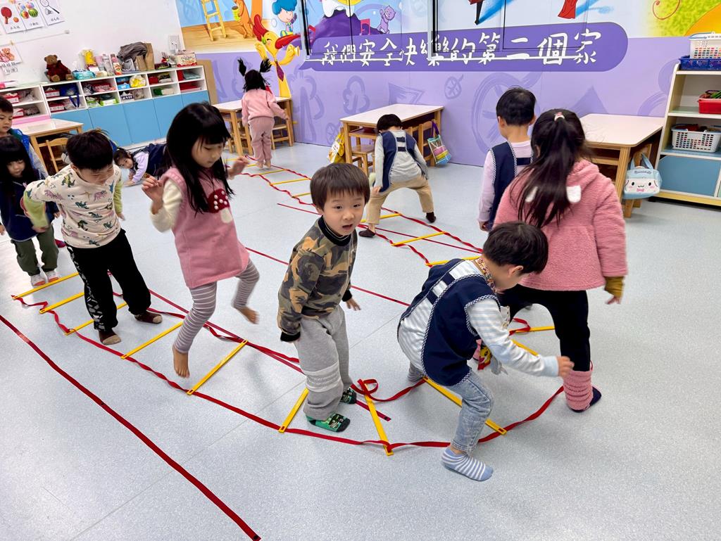 小兔子跳,雙腳併龍,一格一跳前進跳。