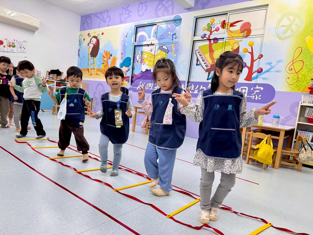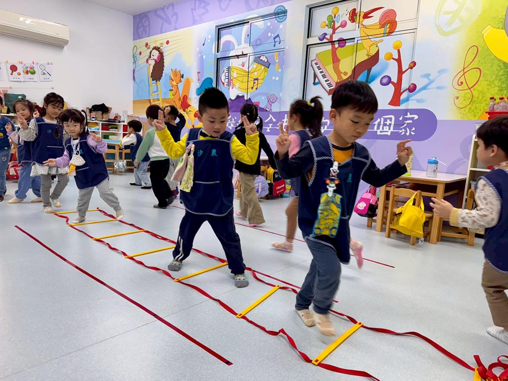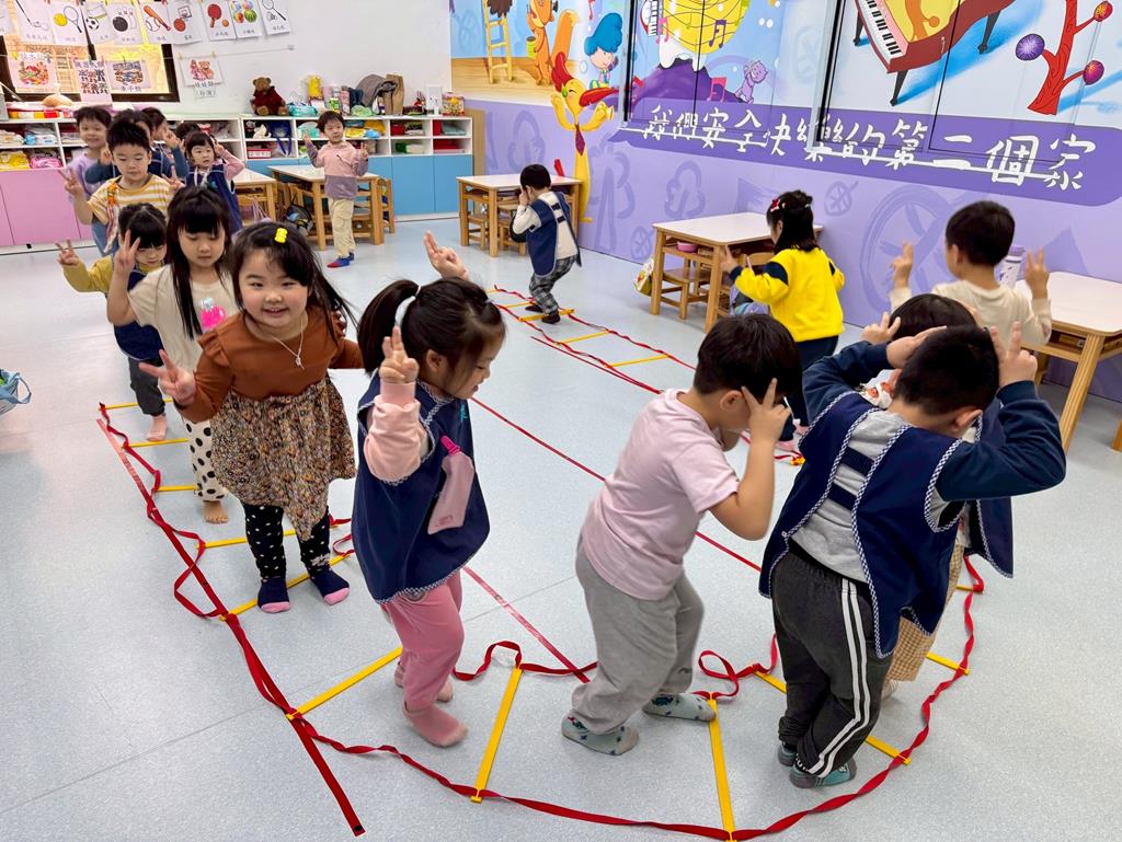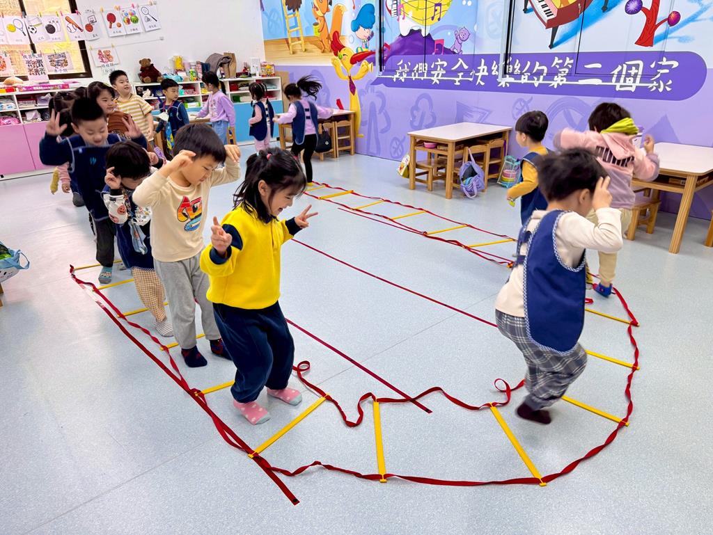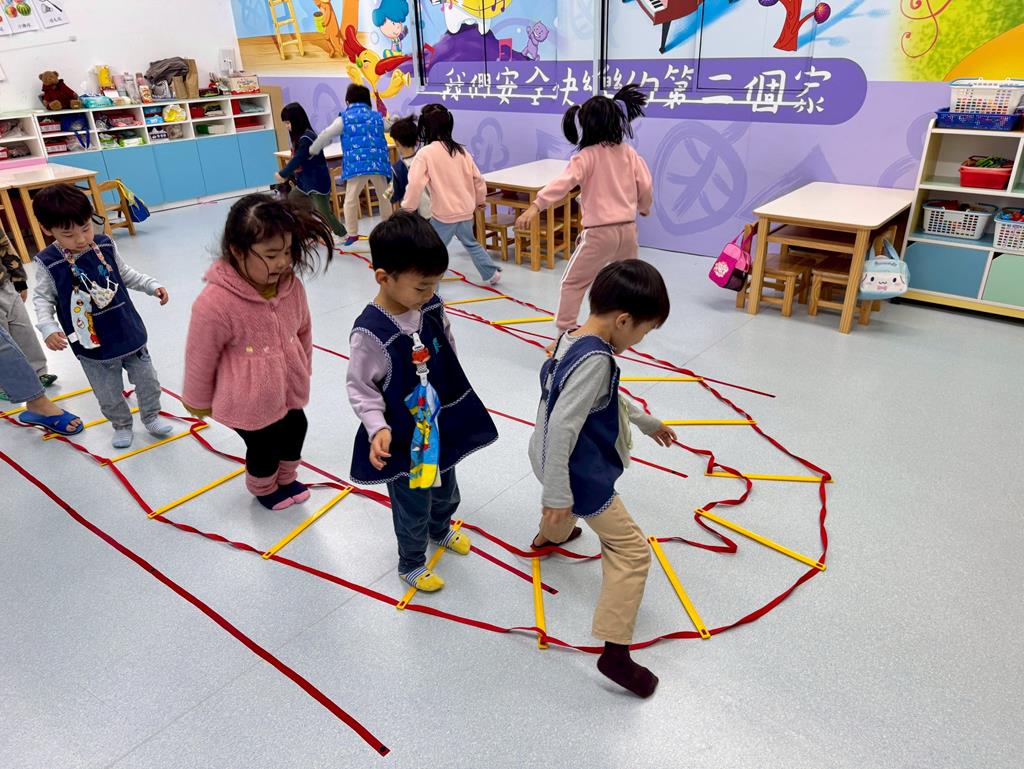 小兔子跳,雙腳併龍,一格一跳前進跳。